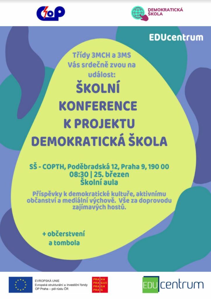Den 25. 3. komunita školy SŠ COPTH uspořádala první ze série závěrečných konferencí k projektu Demokratická škola a byl to výjimečný zážitek nejen díky pozvaným hostům, ale i aktivitě a angažovanosti studentů a pedagogů.