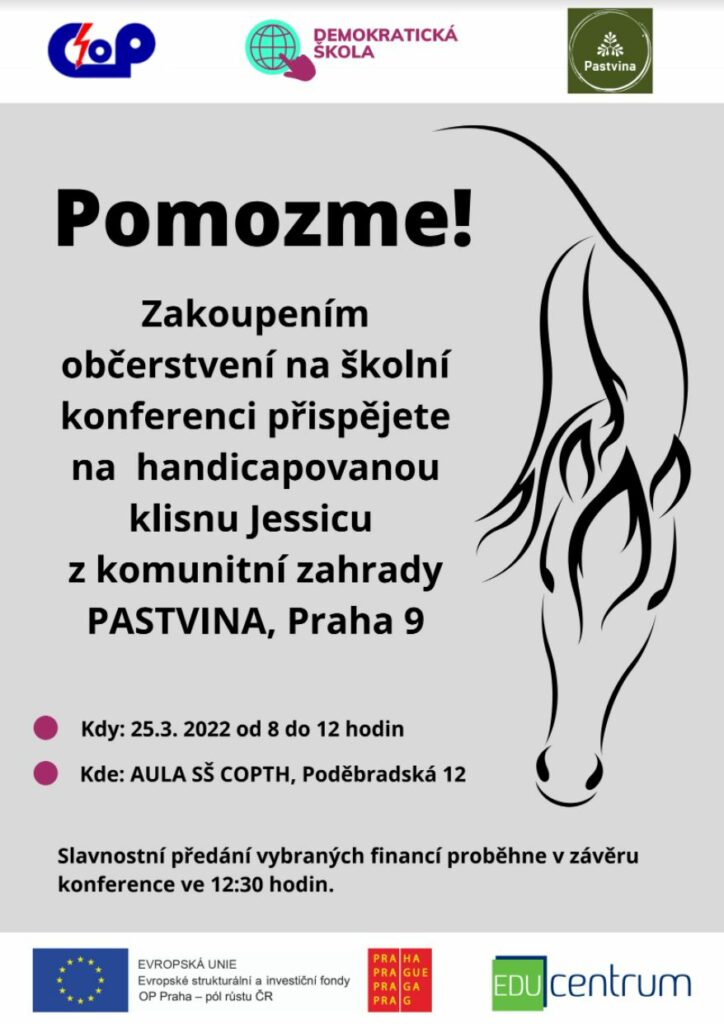Kromě samotné organizace konference, kde zazněla spousta zajímavých myšlenek, se studenti vyznamenali uspořádáním dvou sbírek – Čokoládové tomboly, jejíž výtěžek 4.593 Kč putoval na konto ADRA na podporu ukrajinských uprchlíků. Přípravou a prodejem lahodného občerstvení v průběhu konference pak komunita školy přispěla částkou 2.000 Kč na handicapovanou klisnu Jessicu z Pastviny. Studenti tak v praxi dokázali, že jsou schopni vejít do role aktivních občanů, spojit síly pro dobrou věc a ároveň citlivě reagovat na současné potřeby společnosti. Moc děkujeme a těšíme se na konference na dalších školách.