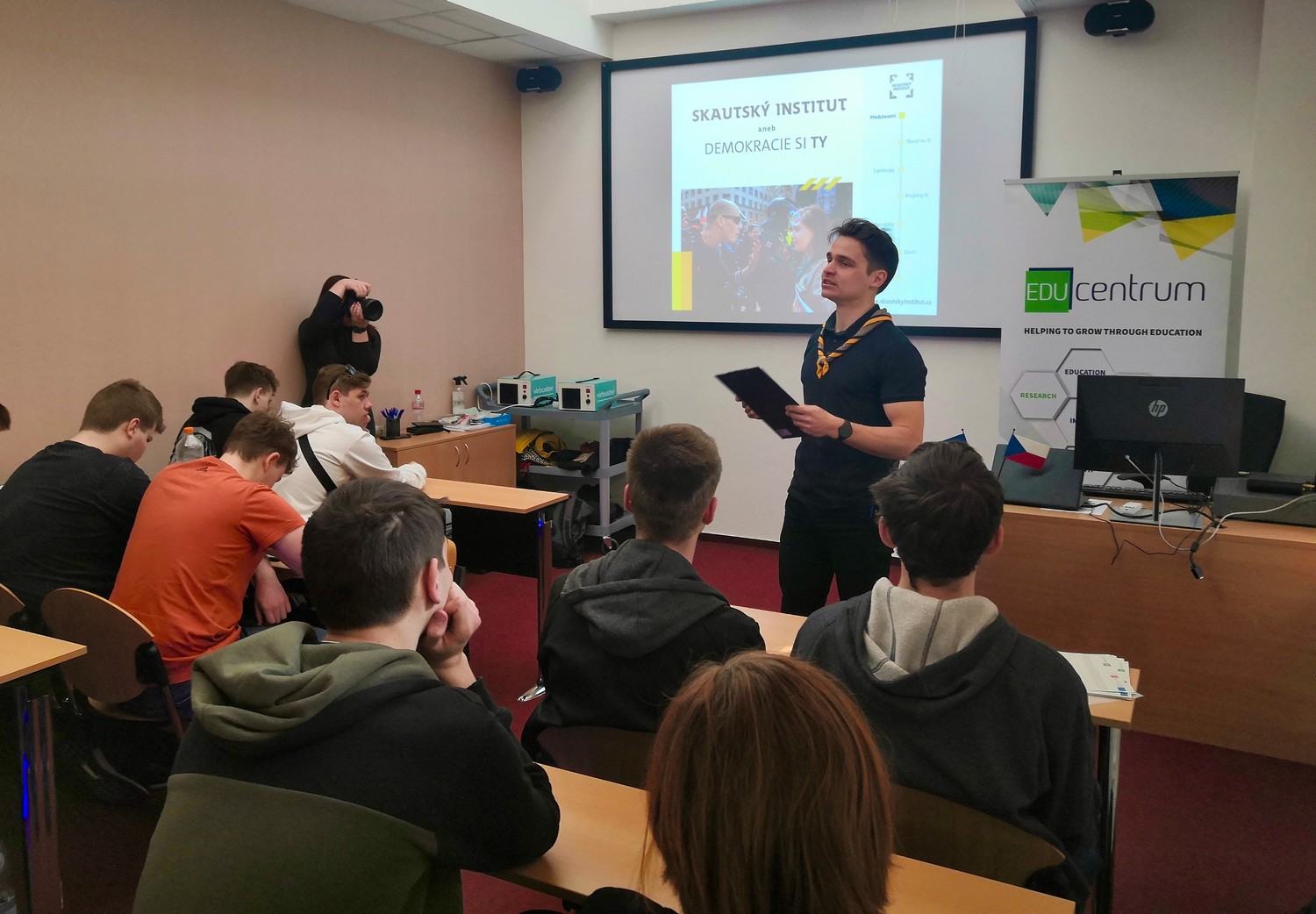 Na téma občanské angažovanosti a činnosti Skautského institutu jako mostu mezi skauty a veřejností přišel debatovat zástupce SI Ondřej Hrubeš a interaktivní formou představil skauting ve světě, sdílené hodnoty a návaznost na téma demokracie.