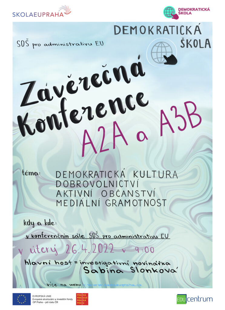 V úterý 26. 4. 2022 se konala v pořadí druhá závěrečná konference projektu Demokratická škola, tentokrát ve velkém konferenčním sále SOŠ pro administrativu v EU v Horních Počernicích. Studenti se role organizátorů, moderátorů a přednášejících ujali velmi svědomitě a profesionálně a účast na konferenci tak byl velkým zážitkem.